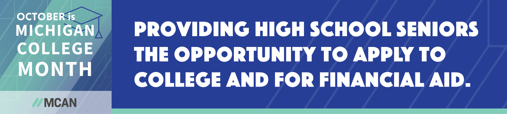Click to see a larger version Michigan College Month Providing high school seniors the opportunity to apply to college and for financial aid. Visit MCM web page Skip to end of gallery Skip to start of gallery